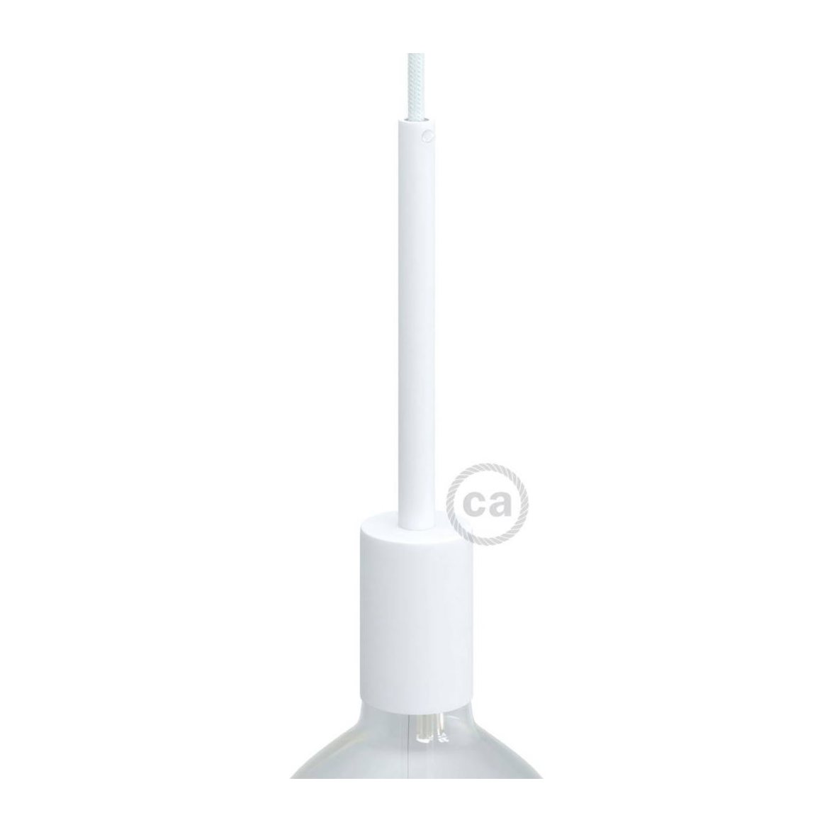 Kit cylindrisk lamphållare E27 i metall med 15 cm lång dravaglastare matt vit