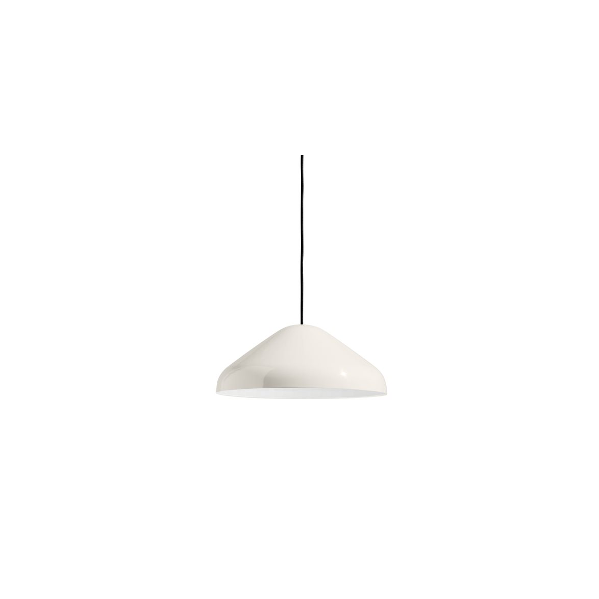 Pao Steel Pendel 350 i färgen Cream white från HAY. Lampkollektionen Pao är ett spännande samarbete med den etablerade japanska designern Naoto Fukasawa. Pao pendeln är uppkallad efter den mjuka, glödande formen av traditionella mongoliska Pao-tält upplysta på natten.